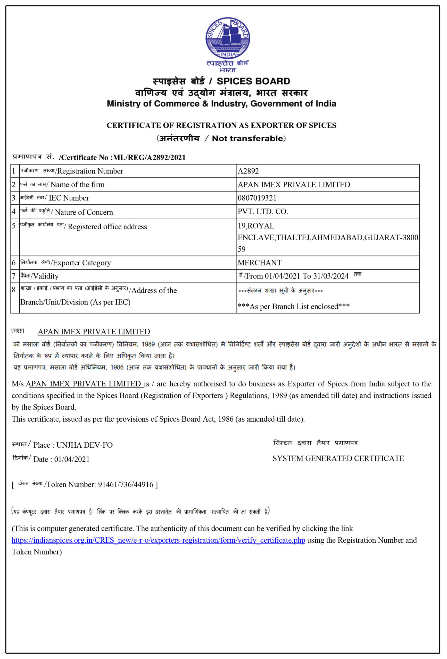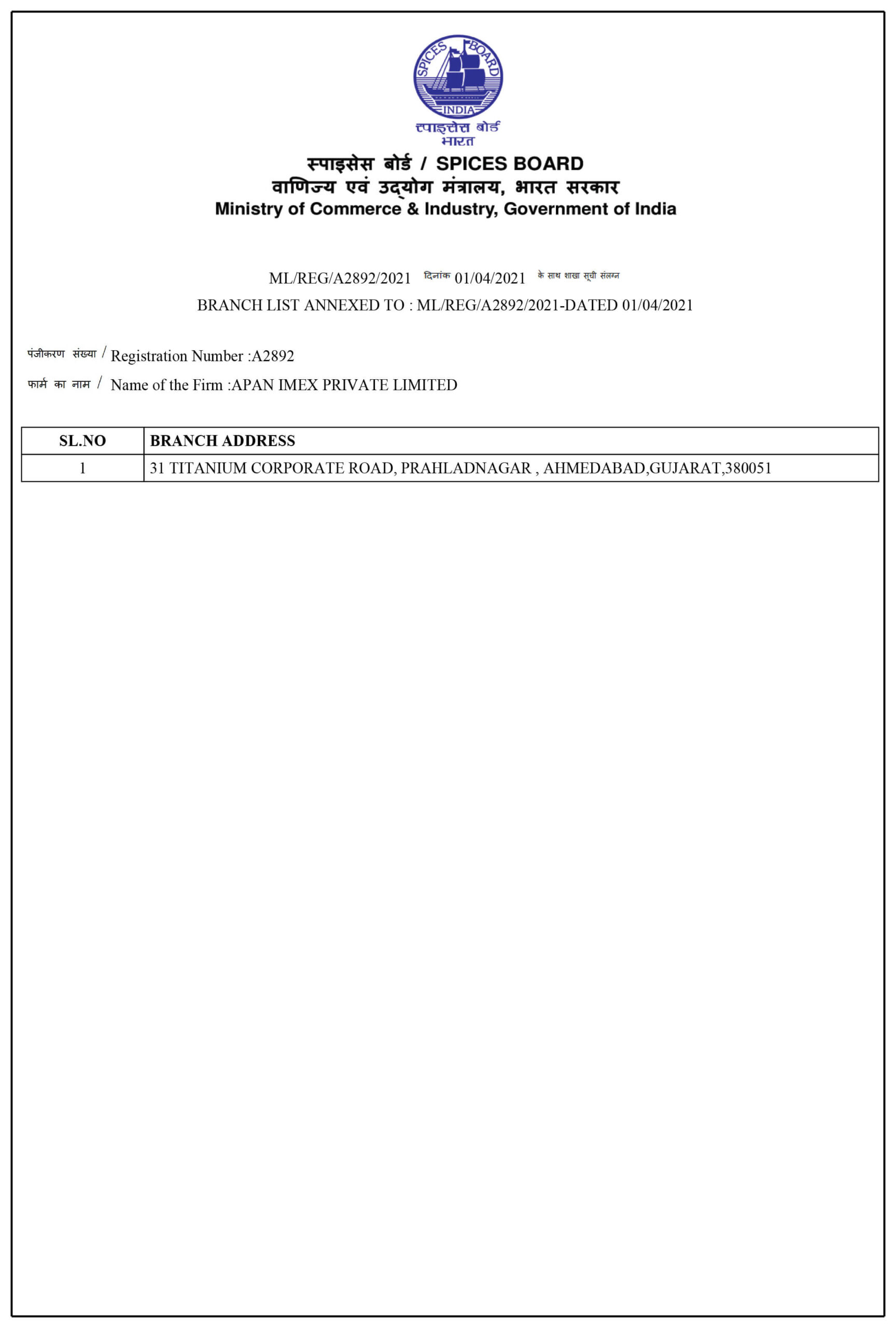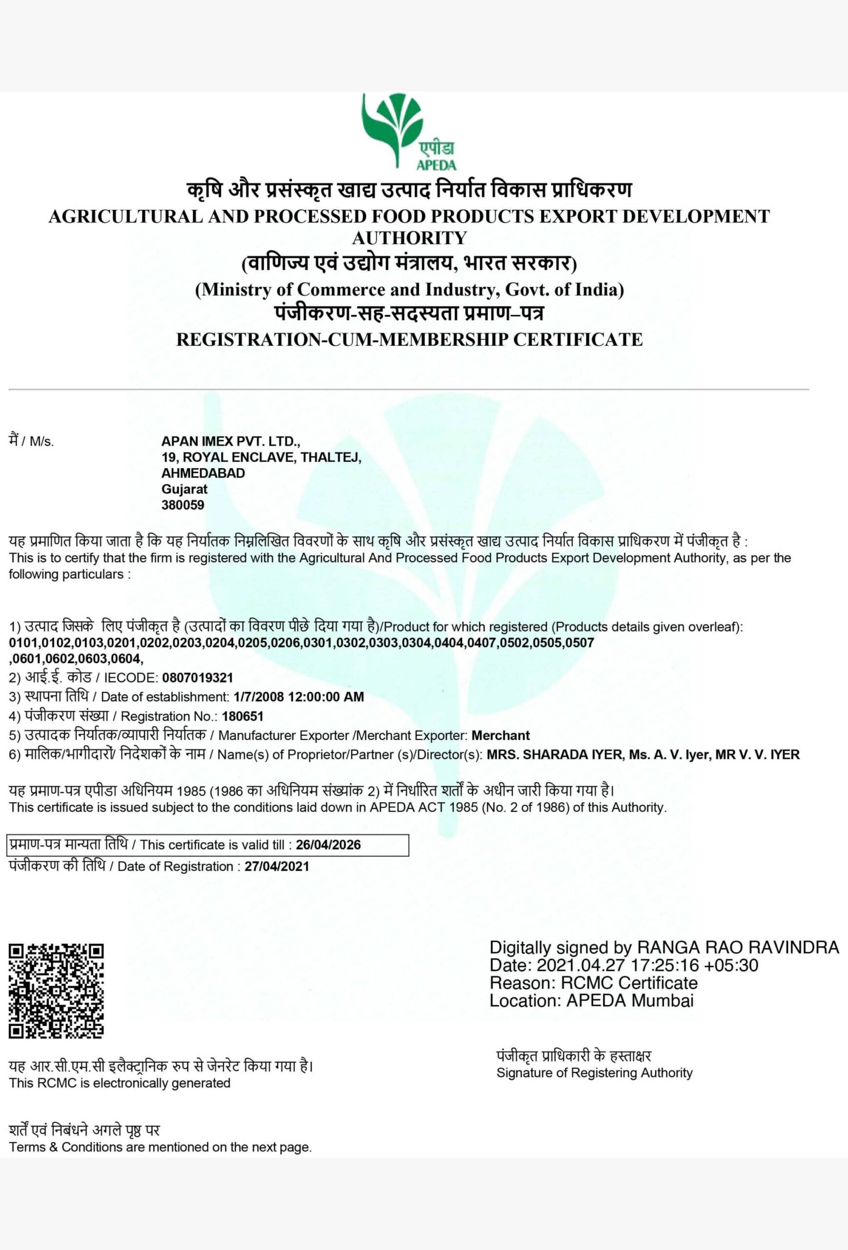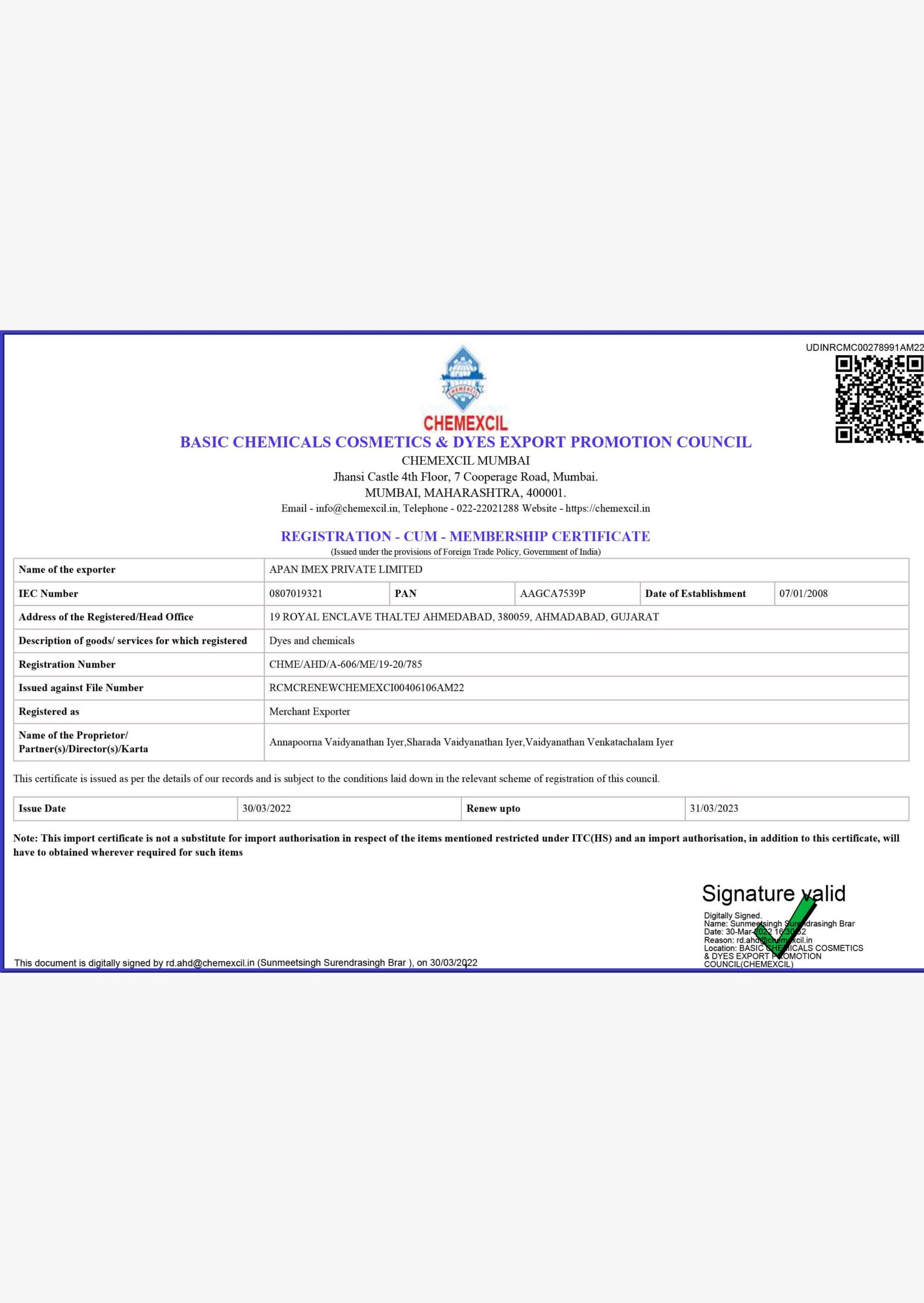 Chemexcil – RCMC – APAN IMEX PRIVATE LIMITED