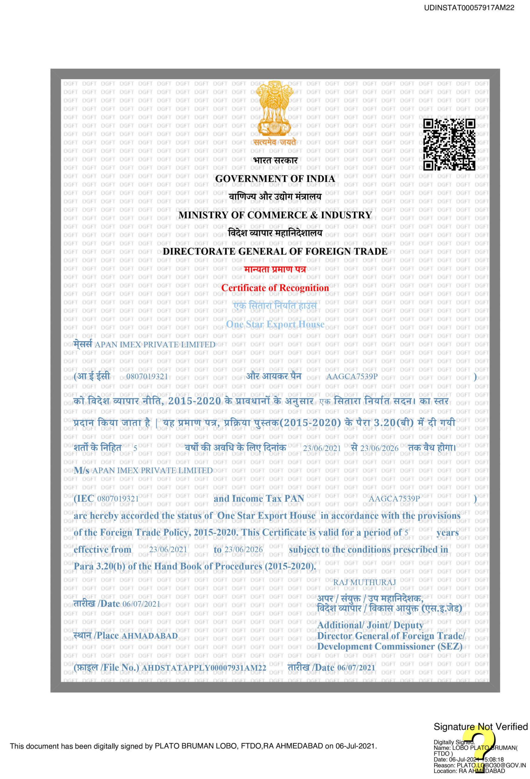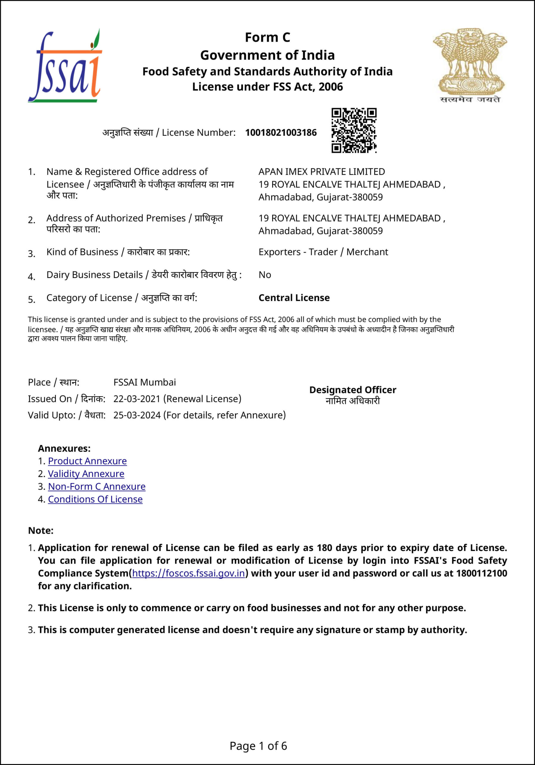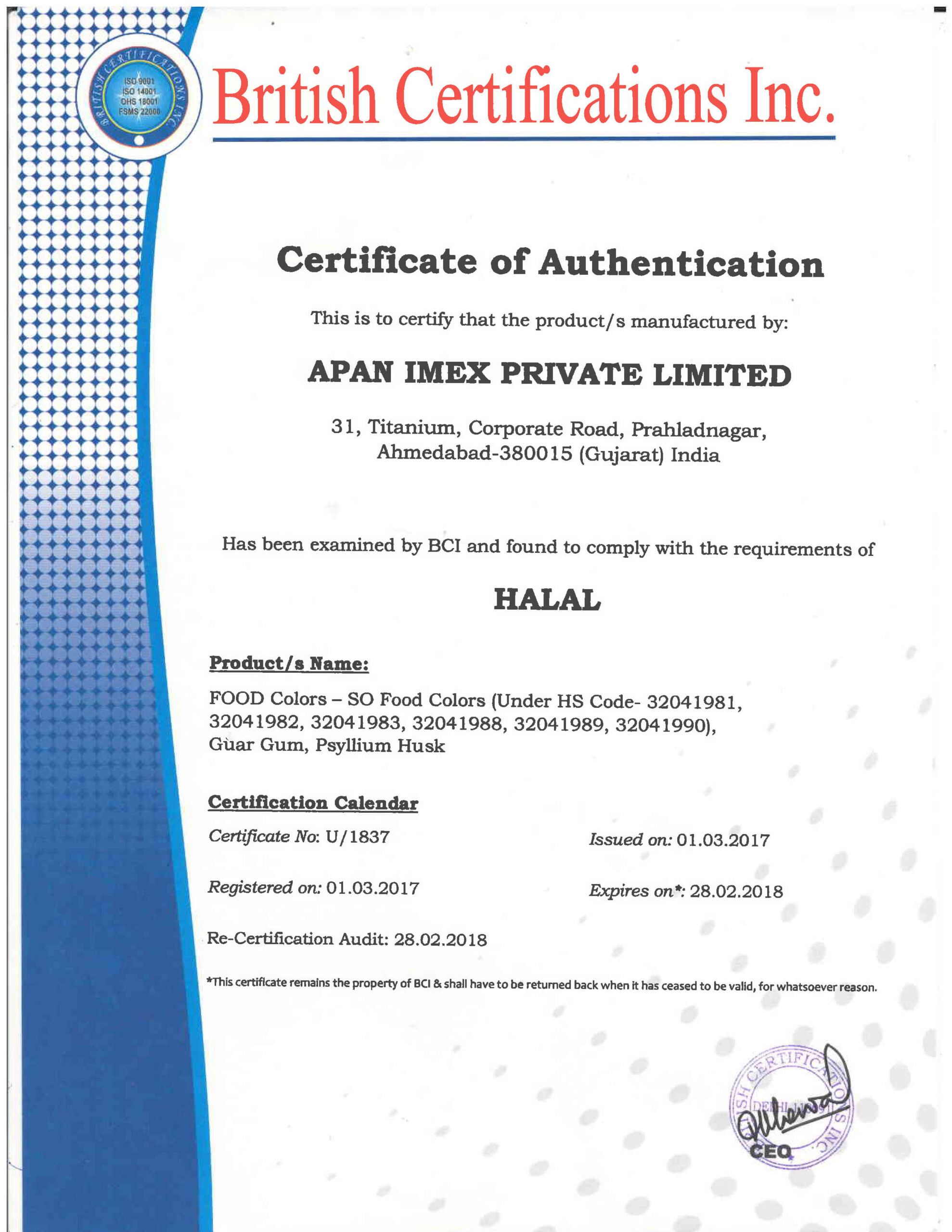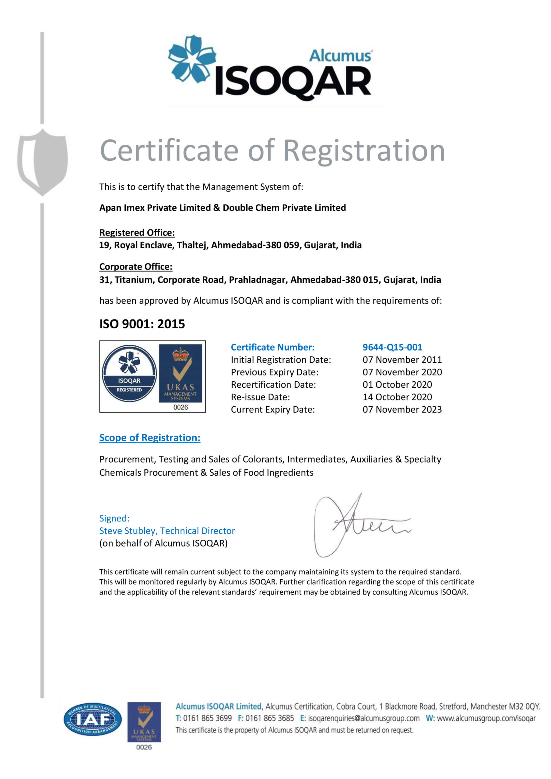 Chemexcil – RCMC – APAN IMEX PRIVATE LIMITED